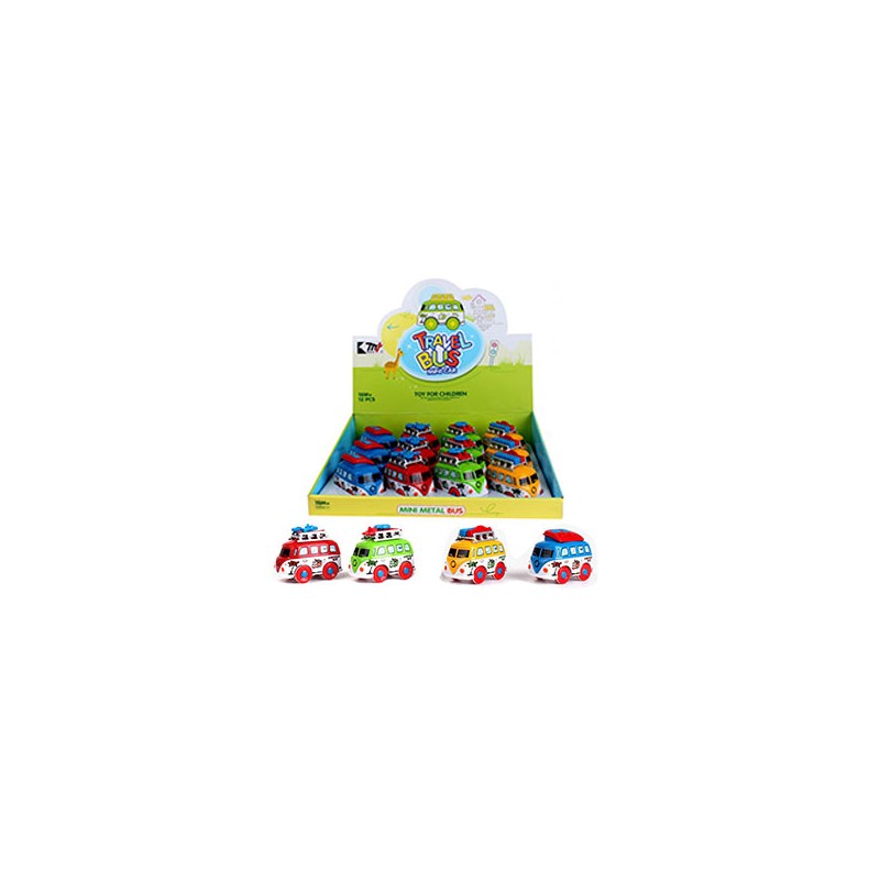 Estos autobuses divertidos de 9 cm son perfectos para niños. vienen en un display de 12 unidades, cada una hecha con d/c y f/p 4 su. detalles simples como los faros, la pintura y el revestimiento exterior agregan a su encantadora apariencia. estos autobuses son ideales para juegos de rol de los más pequeños o para decorar la habitación del hogar. se pueden colocar sobre una mesa o estantería para añadir color a cualquier habitación. ¡los niños adorarán estas divertidas figuras!