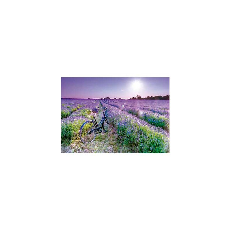 Disfruta de un hermoso paisaje mientras armas este puzzle de 1000 piezas de una bicicleta en un campo de lavanda. perfecto para pasar tiempo en familia o como un desafío personal. ¡haz tu pedido ahora en tripijocs!