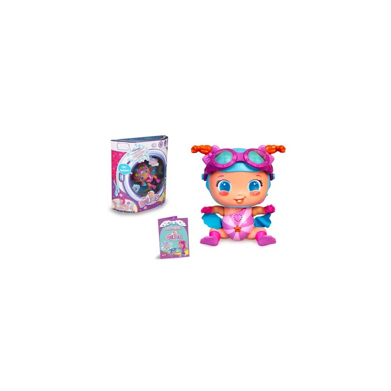 sumérgete en tu próxima aventura con las bellies - ¡lily-splash! es la única belly apta para el agua. su superpoder es que puede sumergirse en el agua, pero tiene las mismas características que sus compañeras gemelas. además, viene con una marca de nacimiento y unas gafas de agua para que puedas quitártelas y chapotear en el agua.