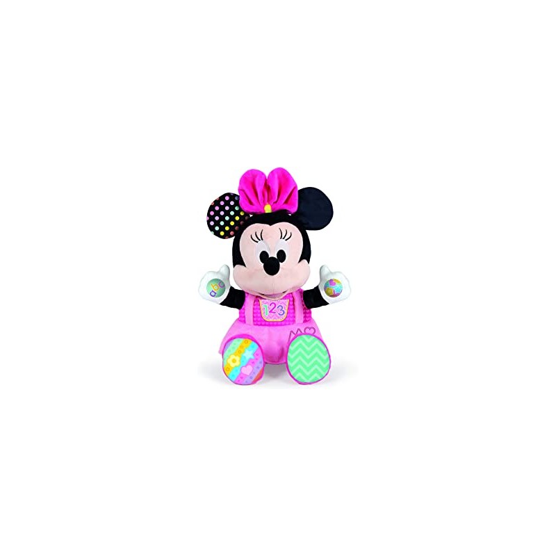 Peluche Baby Minnie I & My Teddy Bear de Clementoni es un suave peluche que tu hijo puede llevar a todas partes. Con tres botones interactivos en las manos y la barriga, canta junto a las simpáticas canciones infantiles con la voz original de Baby Minnie. Las primeras letras, números y colores del bebé serán guiados por este divertido juguete para cantar.
