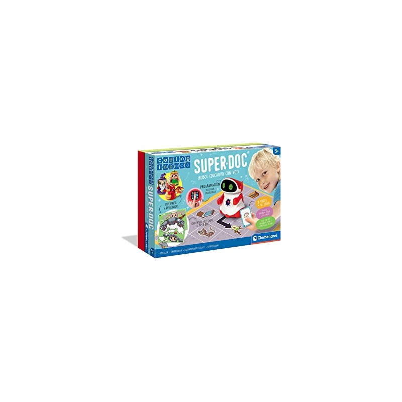 Super Doc es un juguete/juego educativo que anima a los niños a aprender a codificar jugando. El nuevo Super Doc, con sus grandes y brillantes ojos, introduce a los niños en los fundamentos de la codificación de forma creativa, gradual y divertida. En el primer modo, el robot se puede programar libremente o utilizar las tarjetas de juego, que sugiere sencillas asociaciones lógicas, para divertidos retos de dos jugadores. Super DOC puede representar cuatro personajes diferentes. Al ponerse la ropa de cartón, el robot se convierte en un dragón, un mago, un hada y un caballero, cada uno con su propia personalidad y misión que cumplir.